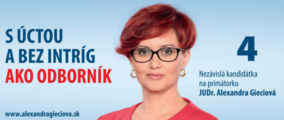 Vraví sa, že strom poznať po ovocí a človeka podľa skutkov. Ako nezávislá kandidátka na post primátorky mesta sa uchádzam o vašu priazeň (váš volebný hlas) nie množstvom prísľubov, ale doterajšou prácou, úctou a odbornosťou.